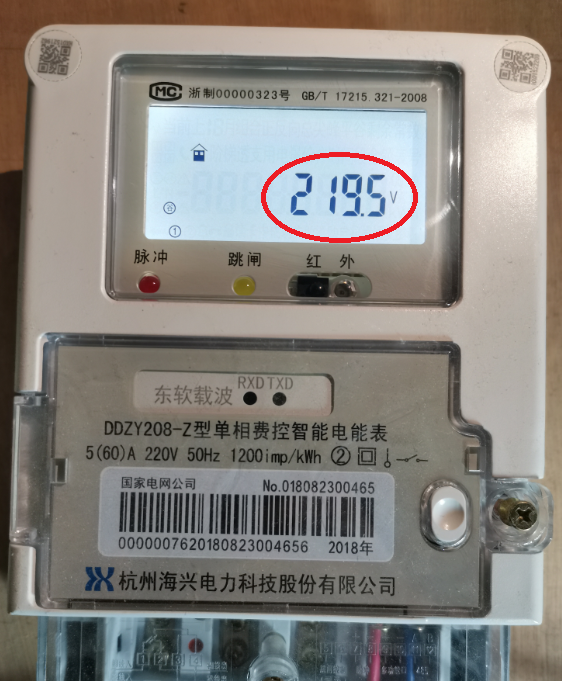 如图所示的“219.5V”,表示当前电表接入的电压为219.5V。