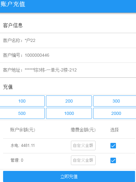 用户可以在‘在线缴费’中进行缴费,这个界面比较简单,可以看到当前余额和欠费金额,这两个信息,其实也就够用了,操作这些,你只需要记住你的“客户编号”即可。