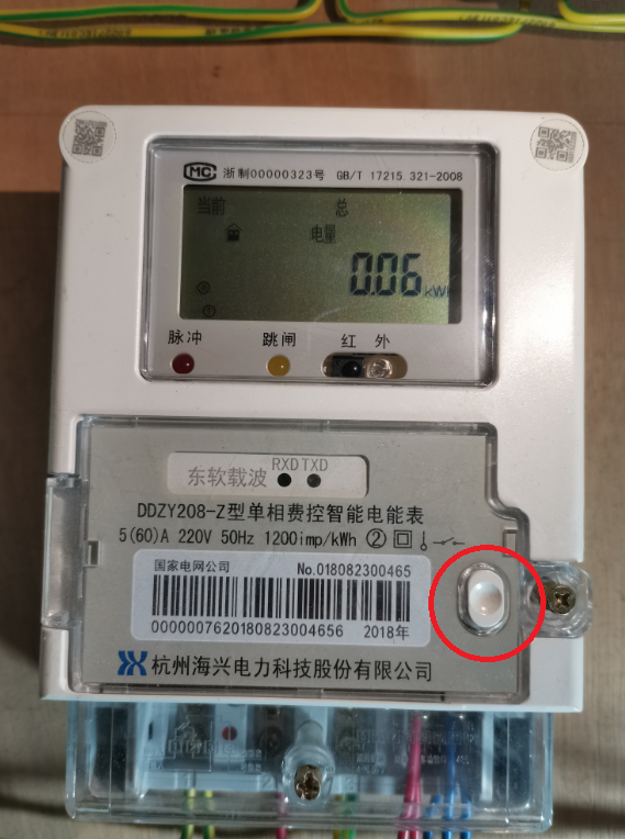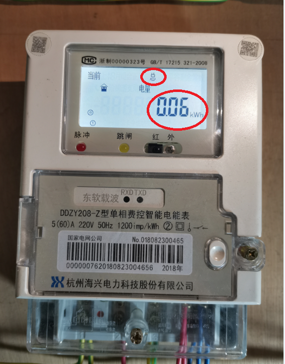 电表背光亮后,下图所示的“总”与“0.06kw.h”,表示当前总用电量为0.06kw.h。