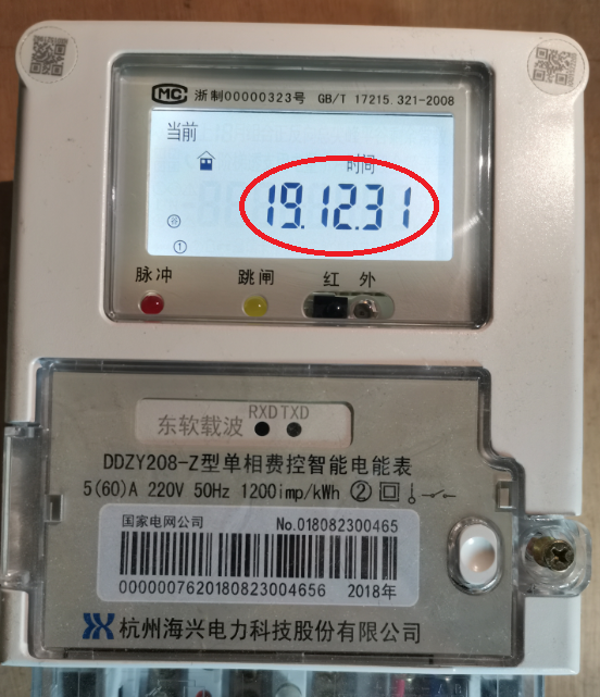 如图所示的“19.12.31”为电表内自带的时间表示2019年12月31日,一般与北京时间相同,如果当前时间与北京时间不合,表示电表出现了计时问题。